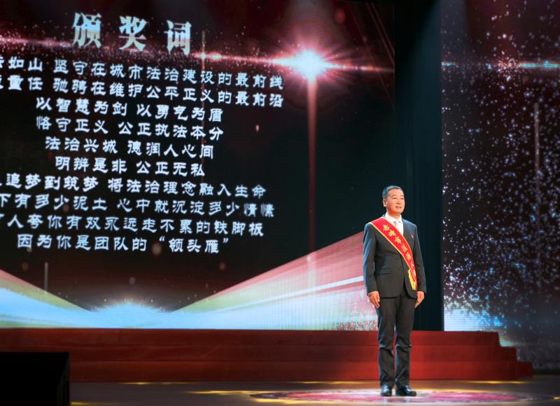 “執(zhí)法如山、堅(jiān)守在城市法治建設(shè)的最前沿,肩負(fù)重任、馳騁在維護(hù)公平正義的最前沿,以智慧為劍、以勇氣為盾,恪守正義、公正執(zhí)法本分……”典禮頒獎(jiǎng)環(huán)節(jié)給予孫廣通高度評價(jià)。孫廣通表示,將認(rèn)真貫徹落實(shí)黨的二十大精神,始終堅(jiān)持以習(xí)近平法治思想為指導(dǎo),堅(jiān)定不移走中國特色社會主義法治道路,以榮譽(yù)為起點(diǎn),堅(jiān)定法治信仰,立足崗位服務(wù)中心大局,以實(shí)際行動和更優(yōu)異的成績,為法治赤峰建設(shè)貢獻(xiàn)更大力量。