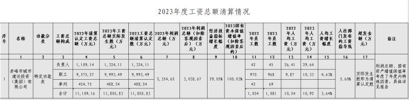 赤峰市城建集團(tuán)2023年度工資總額清…
