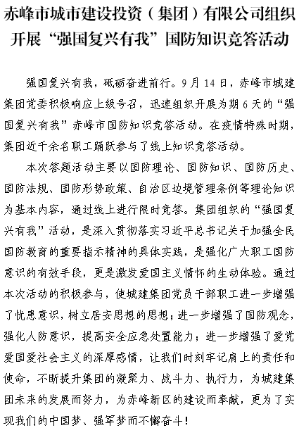 赤峰市城市建設(shè)投資(集團(tuán))有限公司組織開展“強(qiáng)國復(fù)興有我”國防知識競答活動