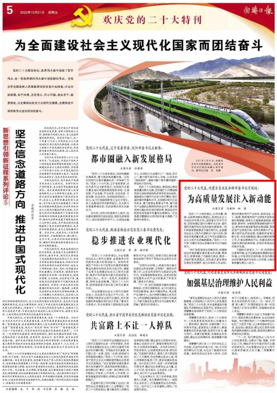 黨的二十大報告提出,必須完整、準確、全面貫徹新發(fā)展理念,堅持社會主義市場經(jīng)濟改革方向,堅持高水平對外開放,加快構建以國內(nèi)大循環(huán)為主體、國內(nèi)國際雙循環(huán)相互促進的新發(fā)展格局?!拔覀儗⒕o緊圍繞推進中國式現(xiàn)代化、全面建設社會主義現(xiàn)代化國家這個奮斗目標,推動經(jīng)濟高質(zhì)量發(fā)展,奮力書寫全面建設社會主義現(xiàn)代化赤峰新篇章。”黨的二十大代表、內(nèi)蒙古自治區(qū)赤峰市委書記萬超岐表示。